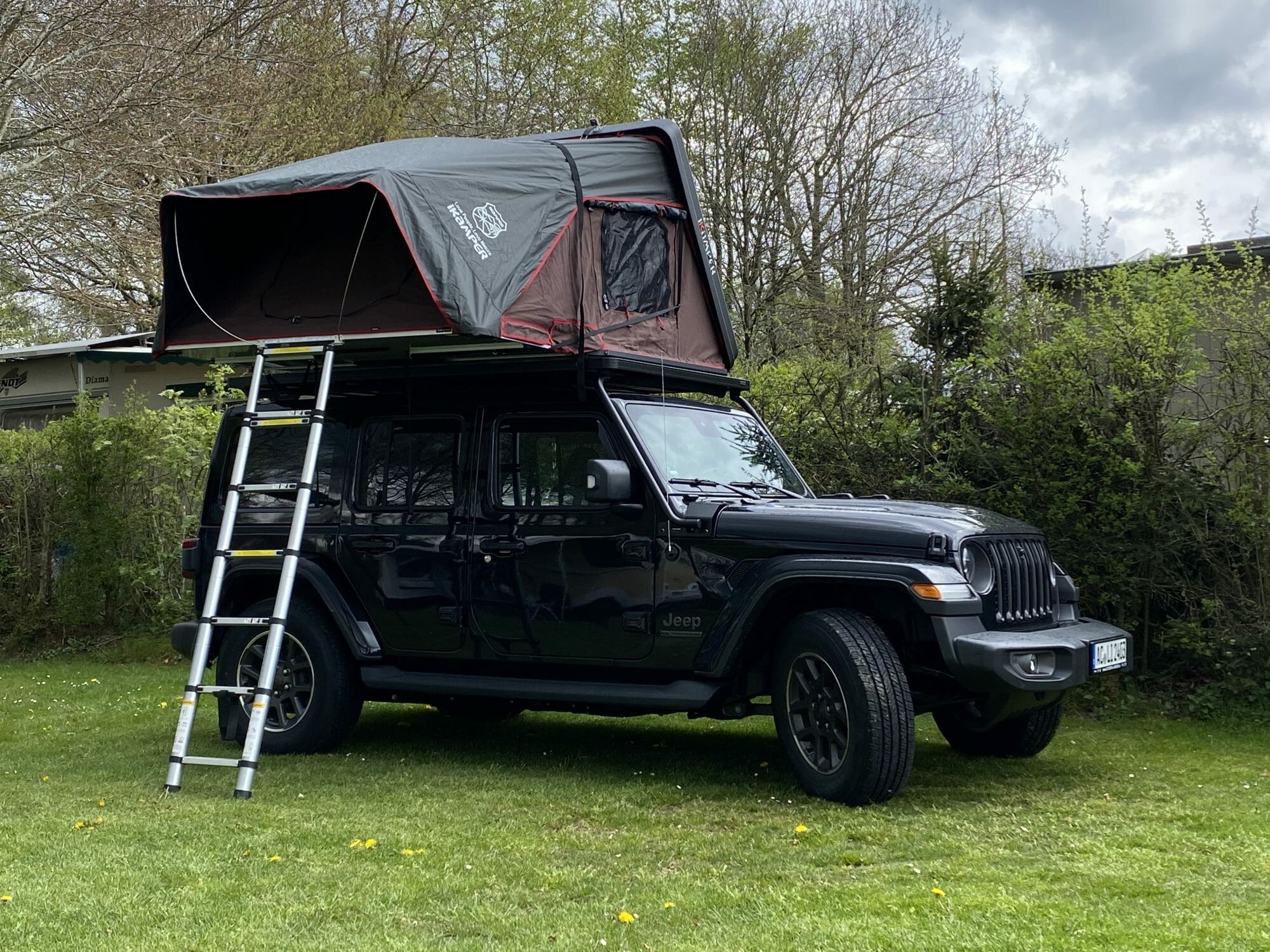 une équipe formidable et, bien sûr, une excellente tente de toit. La première averse de grêle et la pluie sont déjà passées. Nous sommes tout simplement ravis.