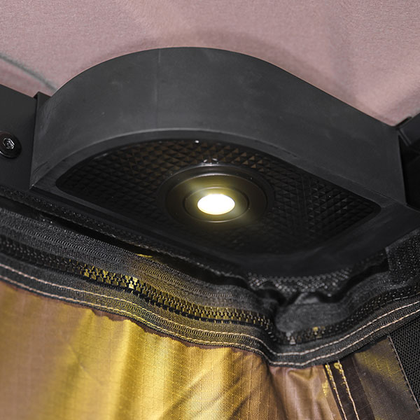 Le tissu extérieur est composé de polyester ripstop résistant avec un revêtement résistant aux intempéries. Il est indéchirable, hydrofuge et résistant aux UV – idéal pour les voyages dans des conditions changeantes. Le système de ventilation bien pensé assure en même temps un climat ambiant agréable sur les deux niveaux, que ce soit par temps chaud ou humide.