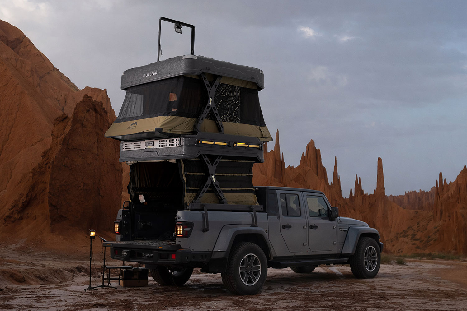 La cabine de pick-up Wingman X est l’alternative parfaite à la tente de toit et le système de camping idéal pour tous ceux qui apprécient l’aventure et le confort. Grâce à sa structure à deux étages automatique, il transforme votre pick-up en un véritable chez-soi sur roues en appuyant sur un bouton – rapidement, de manière stable et avec un confort impressionnant. La construction intelligente offre beaucoup d’espace pour dormir, se détendre ou travailler sur deux niveaux, tandis que l’éclairage intégré, les haut-parleurs et les ports de charge apportent une touche spéciale. Le meilleur : il ne modifie ni la hauteur ni la largeur de votre véhicule – parfait pour le quotidien et les longs voyages.