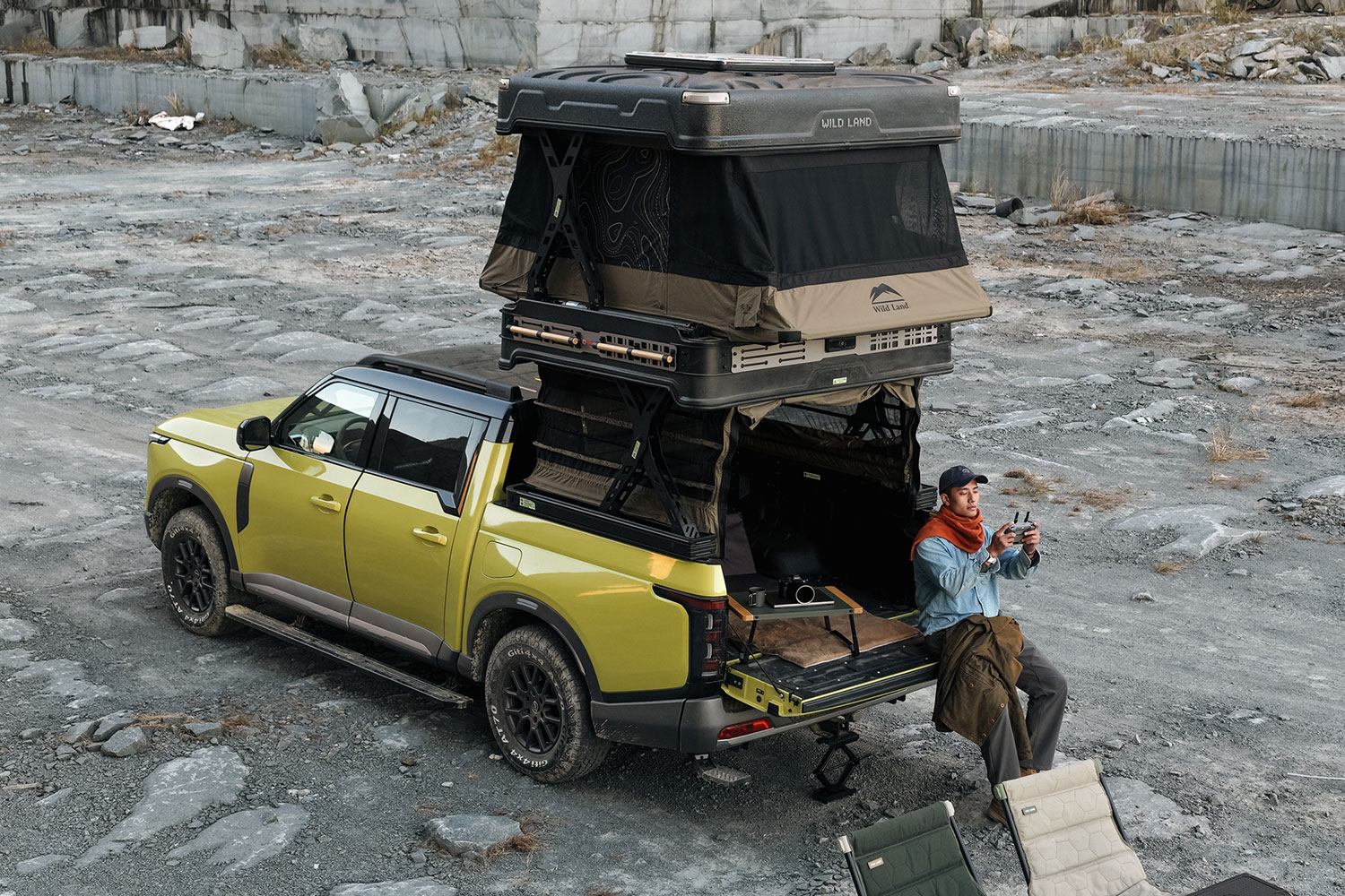 En haut, vous dormez avec vue, en bas, vous avez de la place pour vivre : la tente de toit Wingman X crée une nouvelle forme de liberté en déplacement – moderne, électrique et sans compromis sur le confort.